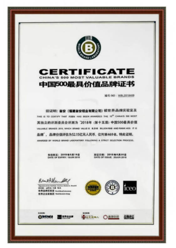 مجهزة بقوالب القطع عالية الدقة، وأكبر خط عمودي كهربائي وأكسيد، وخطوط البثق 6000T، يمكن لشركة FOEN إنتاج جميع أنواع ملفات تعريف النوافذ عالية الدقة وملفات تعريف الحائط الساتر لتلبية طلب العملاء في جميع أنحاء العالم.