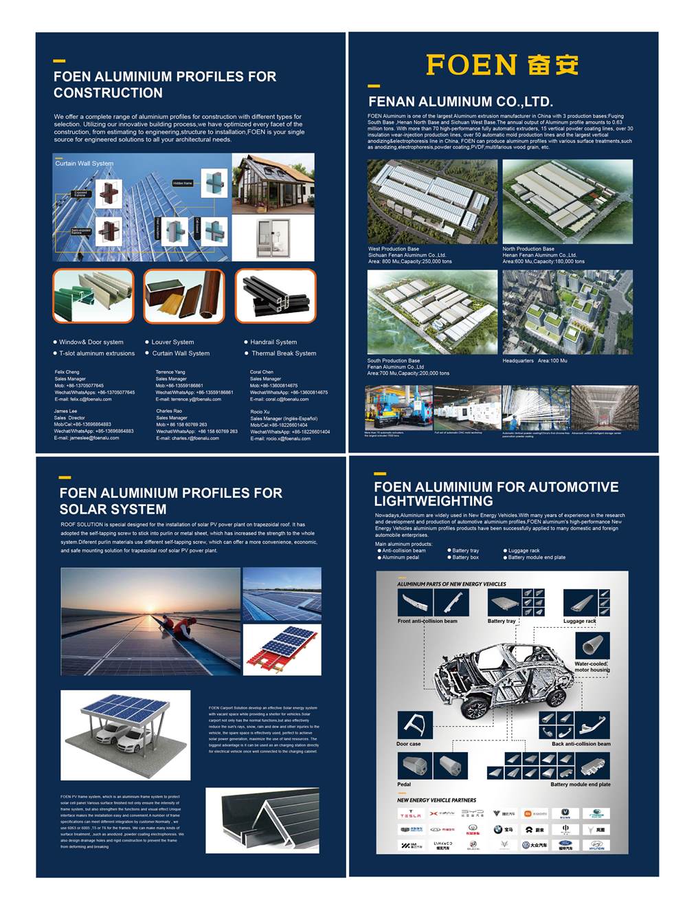 شركة فينان للألمنيوم المحدودة هو واحد من أفضل 5 بثق الألومنيوم شركات في الصين. تغطي مصانعنا مساحة 1.33 مليون متر مربع، بإنتاج سنوي يزيد عن 400 ألف طن. نطور ونصنع مقاطع الألمنيوم المبثوقة لمجموعة واسعة من التطبيقات، مثل: مقاطع الألمنيوم للنوافذ والأبواب، وهياكل الألمنيوم الشمسية، والأقواس، وملحقات الطاقة الشمسية، ومكونات السيارات وقطع الغيار، مثل عوارض منع التصادم، ورفوف الأمتعة، وصناديق البطاريات، وإطارات المركبات. وقد طوّرنا فرقنا الفنية وفرق المبيعات حول العالم لتلبية احتياجات عملائنا المتزايدة.