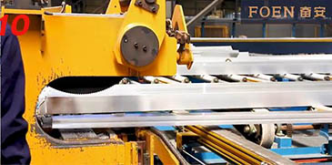 10) يتم نقل المواد المبثوقة إلى المنشار النهائي وقطعها حسب الطول