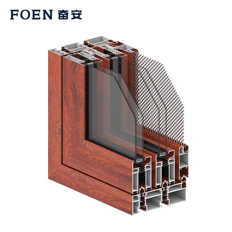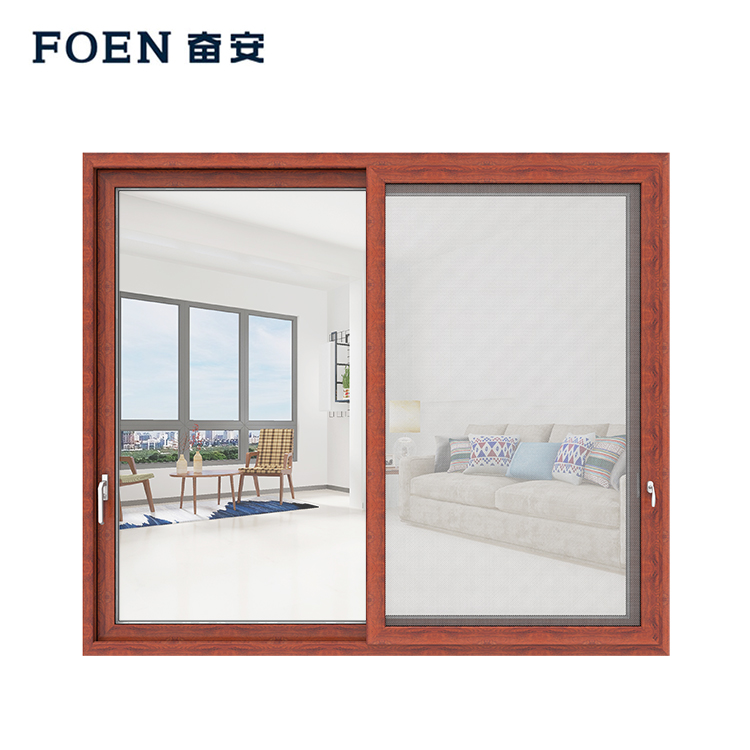 نظام نافذة منزلقة بإطار من الألومنيوم لغرفة المعيشة بطباعة خشبية