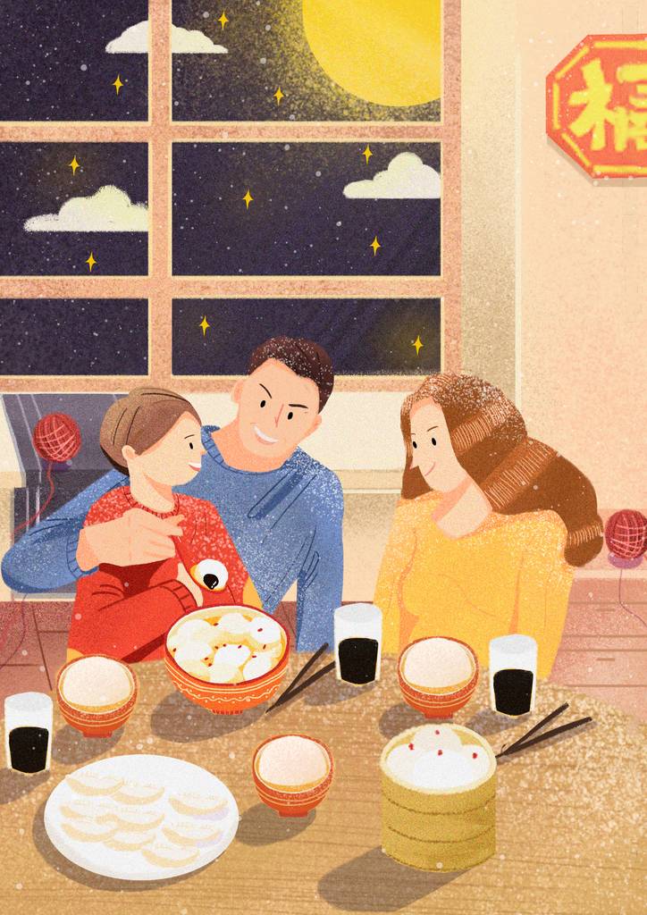 يأكل الناس يوان شياو، أو زلابية الأرز، في هذا اليوم، لذلك يطلق عليه أيضًا "مهرجان يوان شياو". لدى يوان شياو أيضًا اسم آخر، تانغ يوان. وهي كرات زلابية صغيرة مصنوعة من دقيق الأرز اللزج مع بتلات الورد والسمسم ومعجون الفاصوليا ومعجون العناب ولحم الجوز والفواكه المجففة والسكر والزيت الصالح للأكل كحشوة. يمكن غلي تانغ يوان أو قليها أو طهيها على البخار. طعمها حلو ولذيذ. علاوة على ذلك، فإن تانغ يوان في اللغة الصينية لها نطق مشابه مع "توانيوان"، مما يعني لم الشمل. لذلك يأكلها الناس للدلالة على الاتحاد والوئام والسعادة للعائلة.