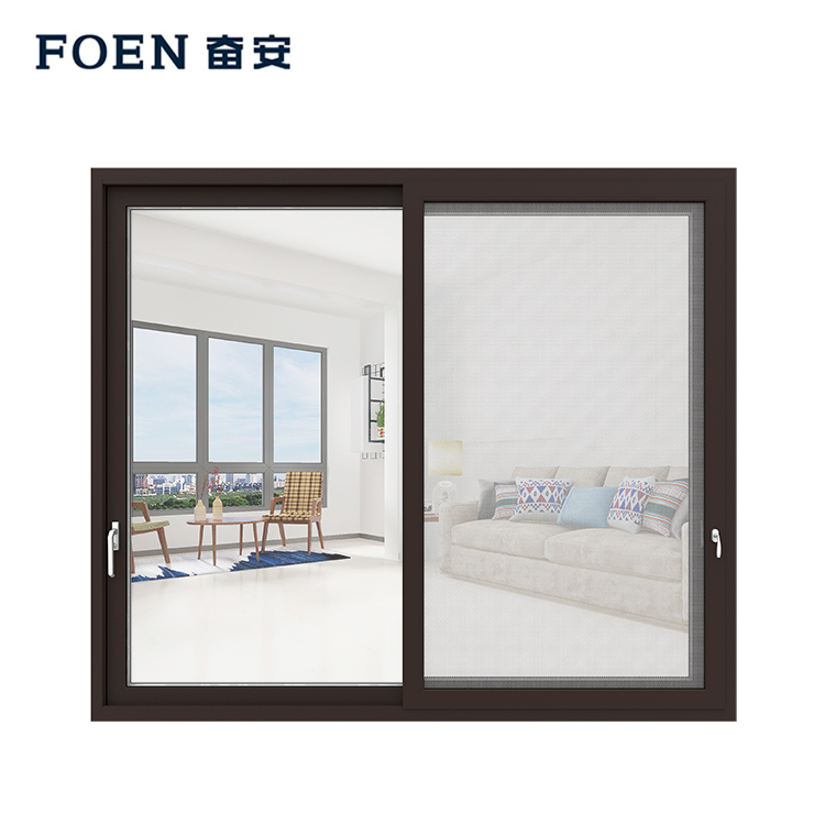 باب منزلق من الألومنيوم للشرفة والمطبخ، مع شبكة من الألومنيوم بالداخل، تصميم شائع، طلاء مسحوق، أنودة، الرحلان الكهربائي، الحبوب الخشبية، معالجة PVDF.