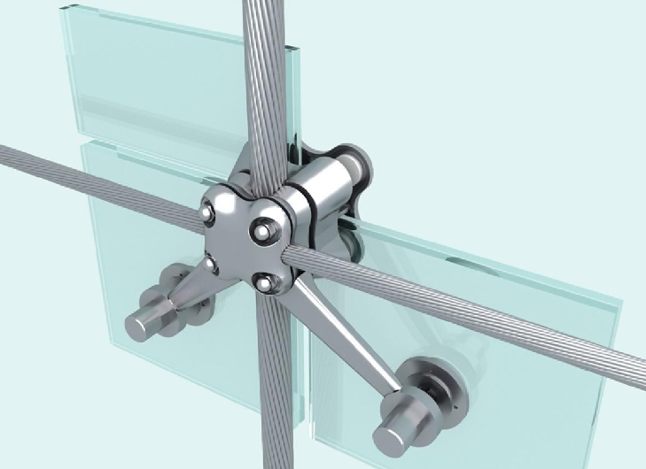 3) جدار ستارة زجاجي متصل بنقطة: جدار ستارة زجاجي بقضيب ربط، جدار ستارة زجاجي على شكل كابل، جدار ستارة زجاجي جملوني