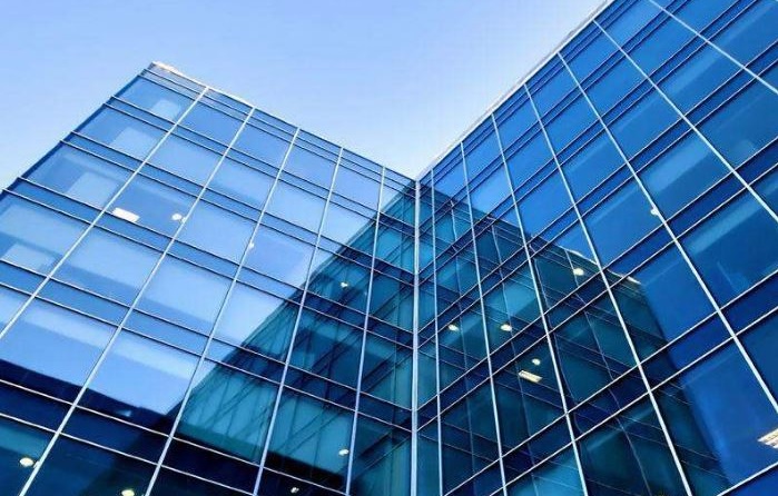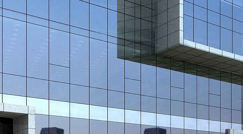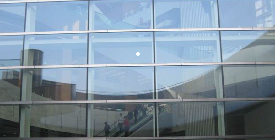 1. حائط ستارة زجاجي :المادة المستخدمة في اللوحة هي حائط ستارة المبنى المصنوع من الزجاج.