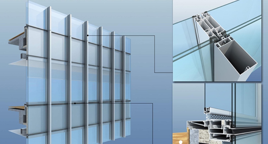 (1) حائط الستارة الزجاجي من النوع الوحدوي: حائط الستارة من النوع الوحدوي، مثل حائط الستارة المكون التقليدي، في بداية التصميم،